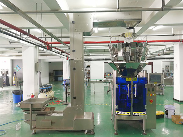 該機用途非常廣泛,主要適合一些不規則的產品、一些計量精度高和容易碎的散狀物品的包裝,它還配置10頭電腦組合秤,稱量非常準確。它還適合多種物料的產品包裝,如:膨化食品,蝦條、香蕉片、瓜子、糖果等產品的包裝,它還具有外加Z型上料機,可方便產品物料的添加末尾添加有成品輸送帶,可直接連接到成品裝配區,方便工人操作, 省工、省事。